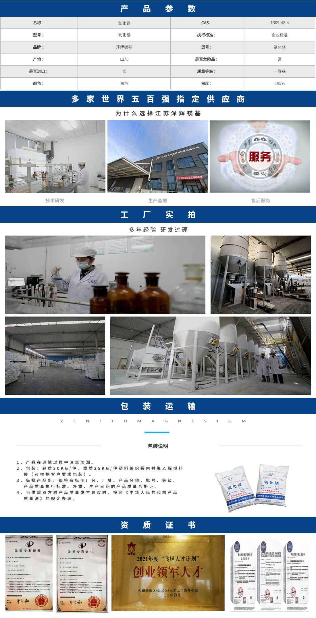 • 工业轻质一级碳酸镁