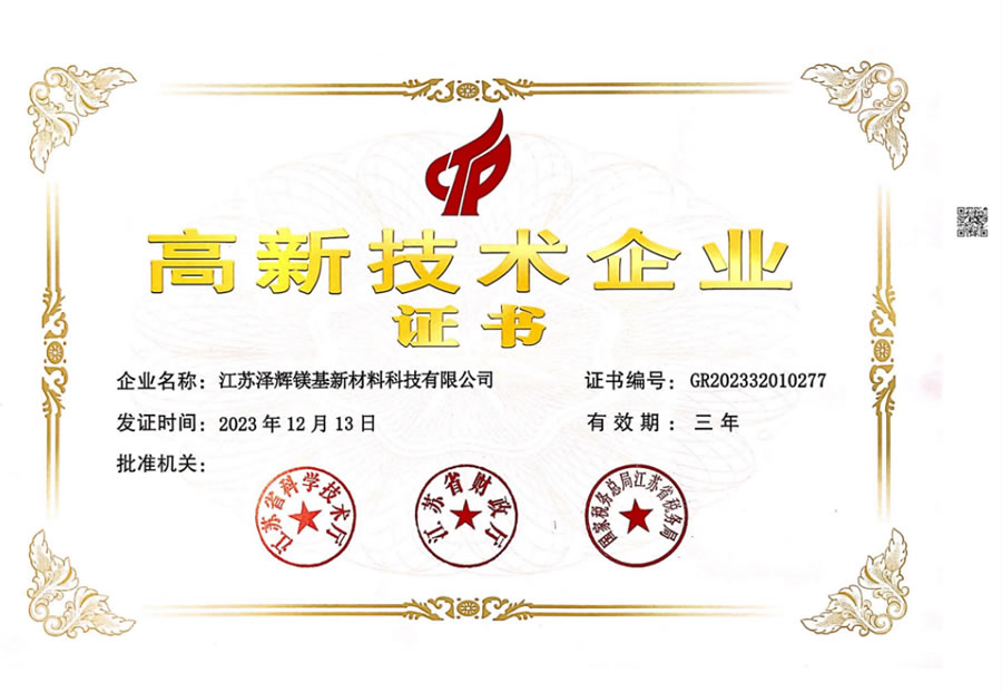山东新泽辉新材料科技有限公司(江苏泽辉镁基新材料科技有限公司旗下子公司)