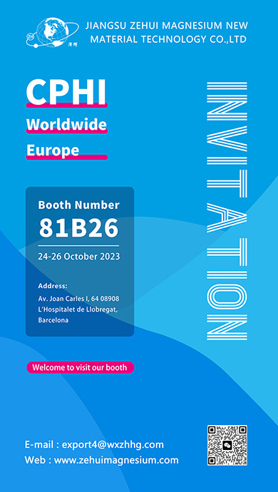 2023年世界制药原料欧洲展览会(CPhI Worldwide Europe)将在2023年10月24-26日在西班牙巴塞罗那会展中心举办。作为国内领跑的医药原料供应商,江苏泽辉镁基诚邀大家在81B26展位愉快洽谈,进一步交流与合作!